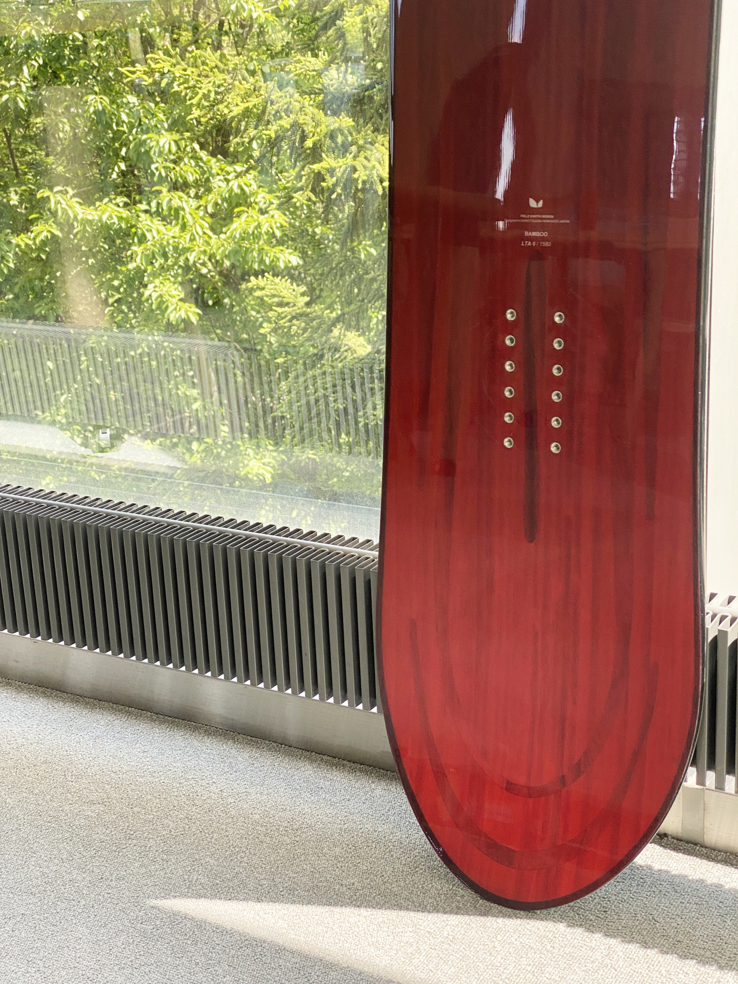 デッキ面に見えるBAMBOO COREの木材は一見垂直に見えますが、実際には様々な角度を持ちながらソール側で一体化しています。また、3D COREでは各木材のラインにテンションを加えたり、斜め方向に力が抜けるように設計されています。これにより、ボード全体として完全に統合された3D COREは、乗るとすぐに心地よいフィーリングを体感することができます。3D COREは機能的なデザインであり、デッキデザインにも表れています。BAMBOO LINEの特徴をよく表現しており、より高度なトーションとフレックスを実現するための新しいコア技術を活かしています。