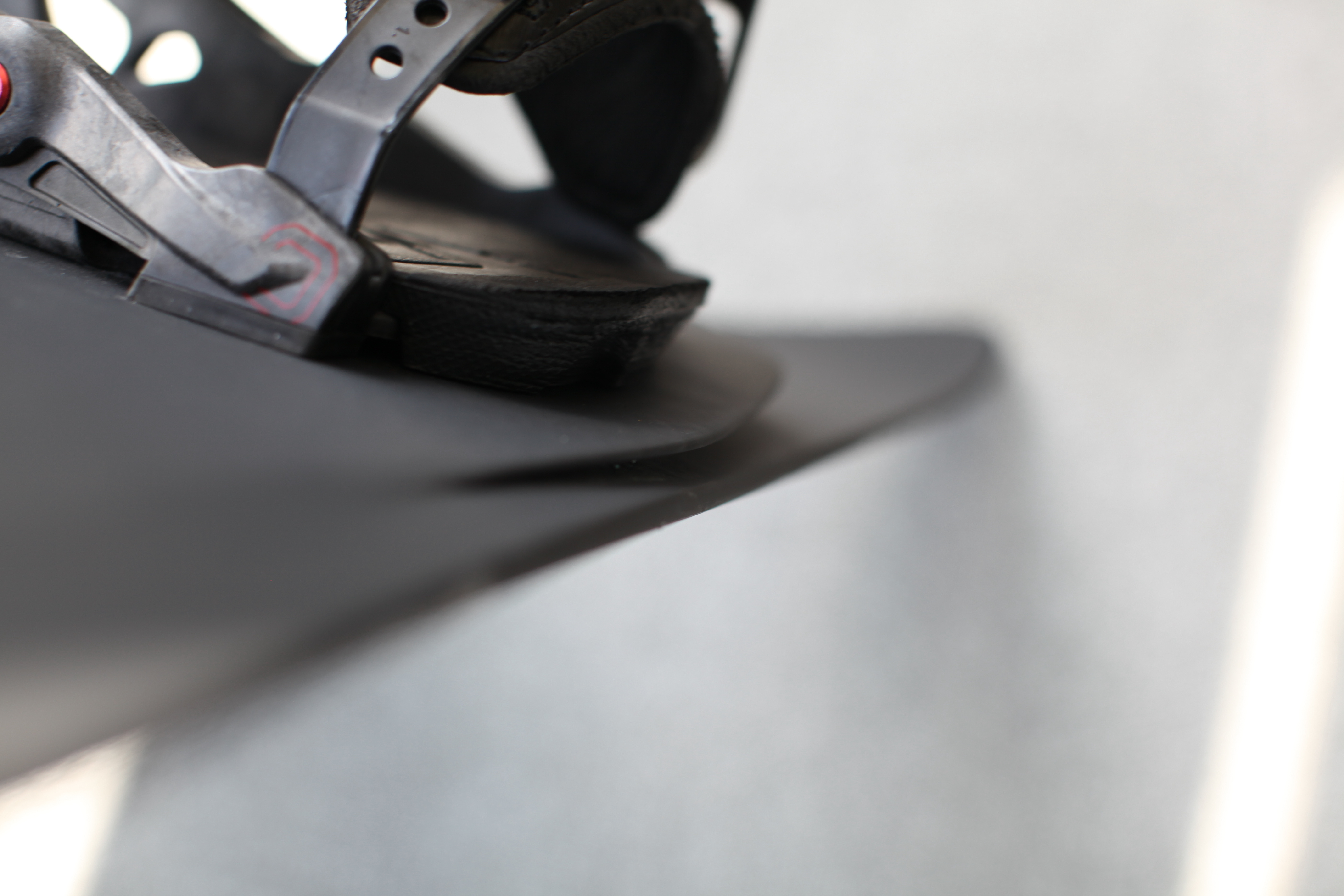 全く新しいデザインは効率の良いパワーレスポンスで2つのテールフィンに力を加えスムーズで多彩なターンへと導きます。完全立体化したデザインは、2つのフィンの可動域支点上部に設定されたビンディング位置からの加重とノーズ方向からのトーションの連動とがスムーズに合わさり自然な加重でターンができるようにデザインされています。また、接雪面とビンディング接雪面が離れていることで雪面の振動を直接とらえることなく加重できることも大きな特徴になっています。