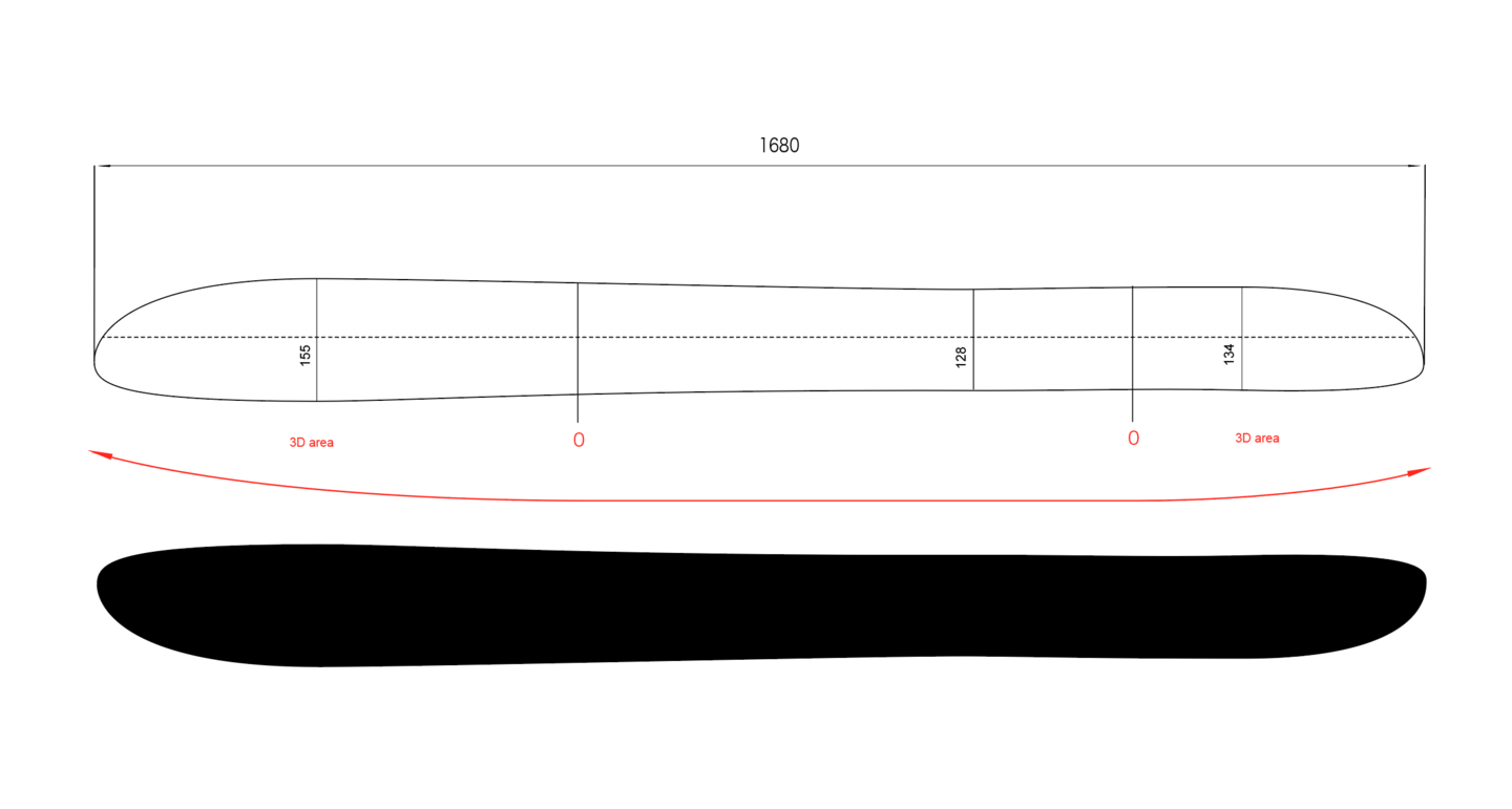3D形状は、エフェクティブエッジを空中に持ち上げることで立体形状にし、より自由により深いターンが自在に操作できるのも特徴です。通常の2D形状の板はノーズとテールのエフェクティブエッジがターンのきっかけになる為ターンの幅が狭くなります。これは自動車の4輪の動きによく似ています。