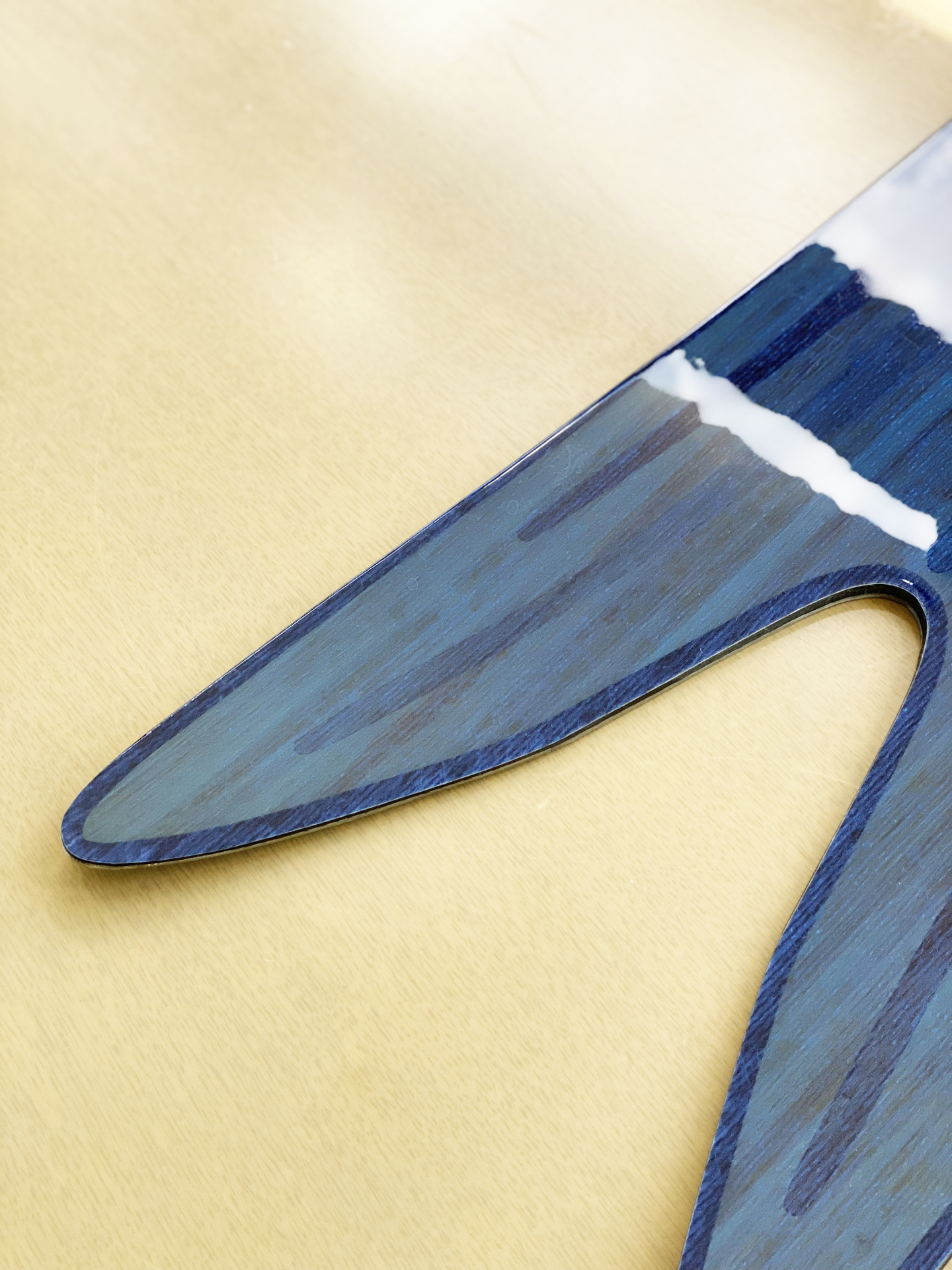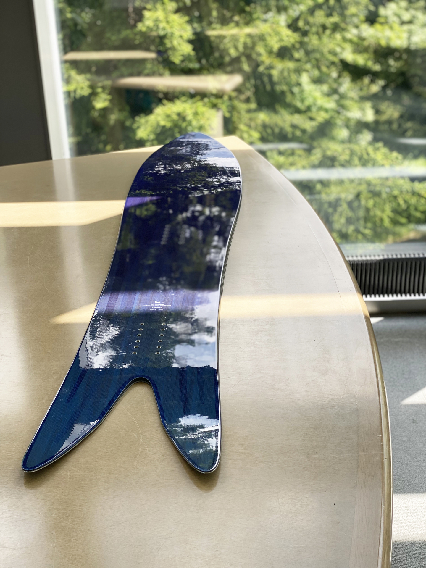 デッキ面に見えるBAMBOO COREの木材は一見垂直に見えますが、実際には様々な角度を持ちながらソール側で一体化しています。また、3D COREでは各木材のラインにテンションを加えたり、斜め方向に力が抜けるように設計されています。これにより、ボード全体として完全に統合された3D COREは、乗るとすぐに心地よいフィーリングを体感することができます。3D COREは機能的なデザインであり、デッキデザインにも表れています。BAMBOO LINEの特徴をよく表現しており、より高度なトーションとフレックスを実現するための新しいコア技術を活かしています。