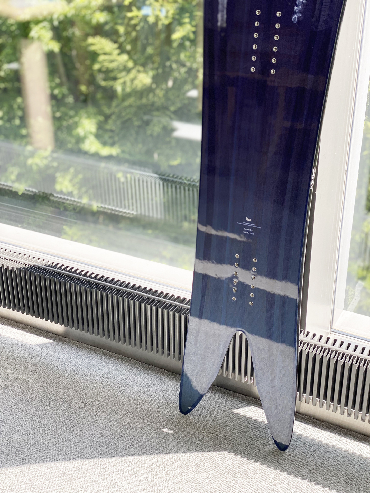 SMMのテールフィンは、確実なエッジ操作を可能にします。ライダーが加重をかけることでテールフィンが可変し、さまざまなサイドカーブが生まれます。この特徴により、的確なエッジ操作と組み合わせて粘りのあるスムーズなターンでスピードを上げていくことができます。さらに、2段階ノーズは、サイドカーブの長さを長くするためにデザインされており、圧雪状態でのカービングだけでなく、パウダーでの滑走時にも浮力を提供します。乗り位置はセンター付近に設定されており、雪面と板ができるだけ平行になるように配慮されています。これにより、失速することなく安定した滑りが可能です。硬い雪での高速なカービングターンからパウダーライディングまで的確なターンで雪山を楽しみましょう。