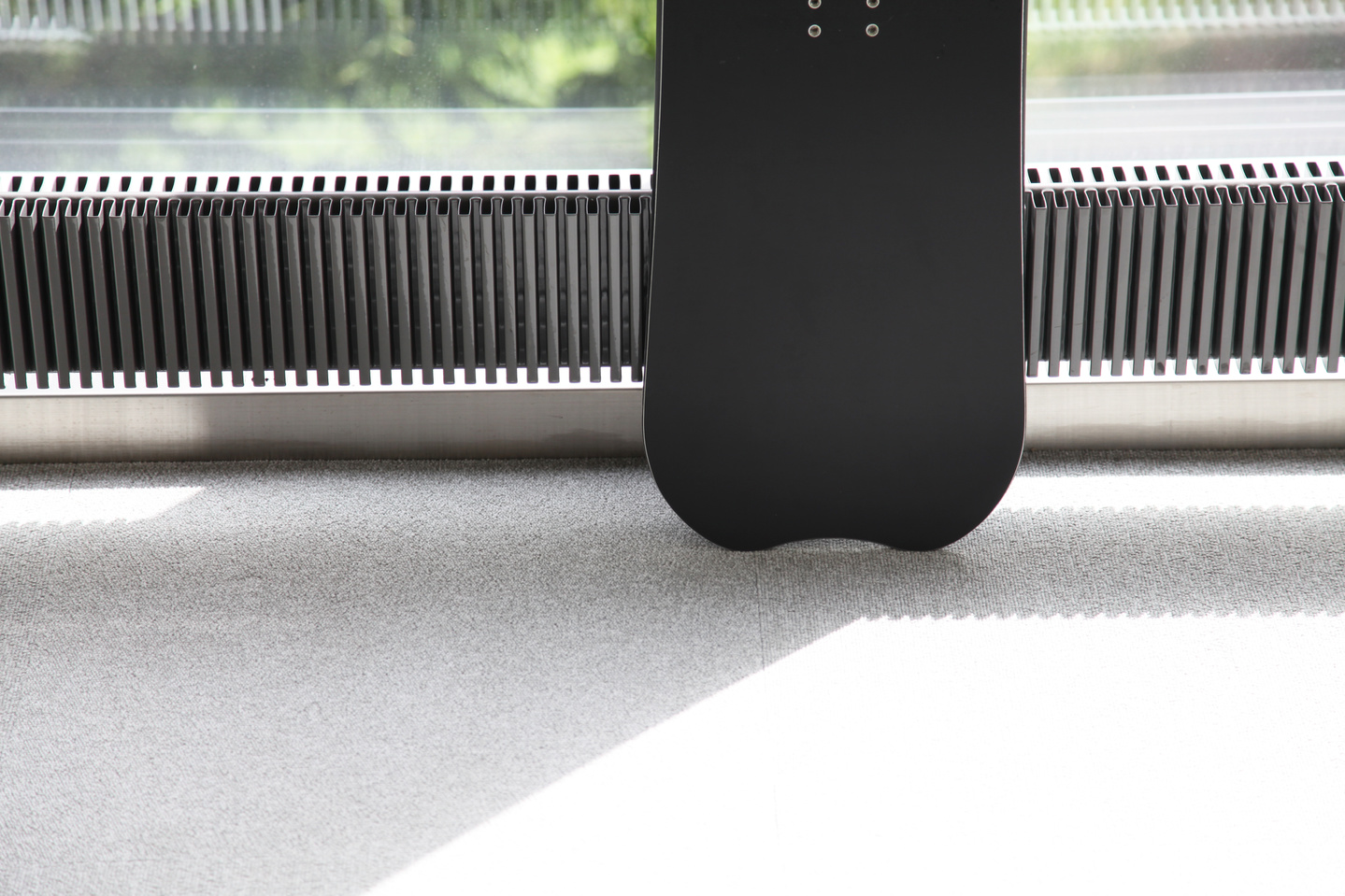 一般的に使用されるウエットカーボンとは異なるプレプレグカーボンを高温高圧で処理することでファイバーグラスよりも薄く超軽量な製品を作ることができます。使用状況により様々な環境の使用からキャンバーのヘタリが激しくなりますが、プレプレグカーボンの特徴ではキャンバーを長時間維持することへの助けでも役立っています。また、一般的なカーボン特有の高フレックスは滑走性能を著しく低下させることからカーボン自体のフレックスを自由にコントロールすることも可能です。超軽量でミディアムフレックスによる操作性を維持しつつも高反発を実現し、より機敏に操作できるようにFIELD EARTHでは高難易度のプレプレグカーボンを採用し続けています。