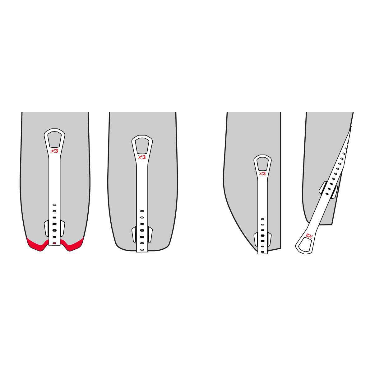 従来のフック状のパーツの固定ではなくデッキ面につけたれたパーツで止めることにより、より柔軟でスムーズに固定できる。